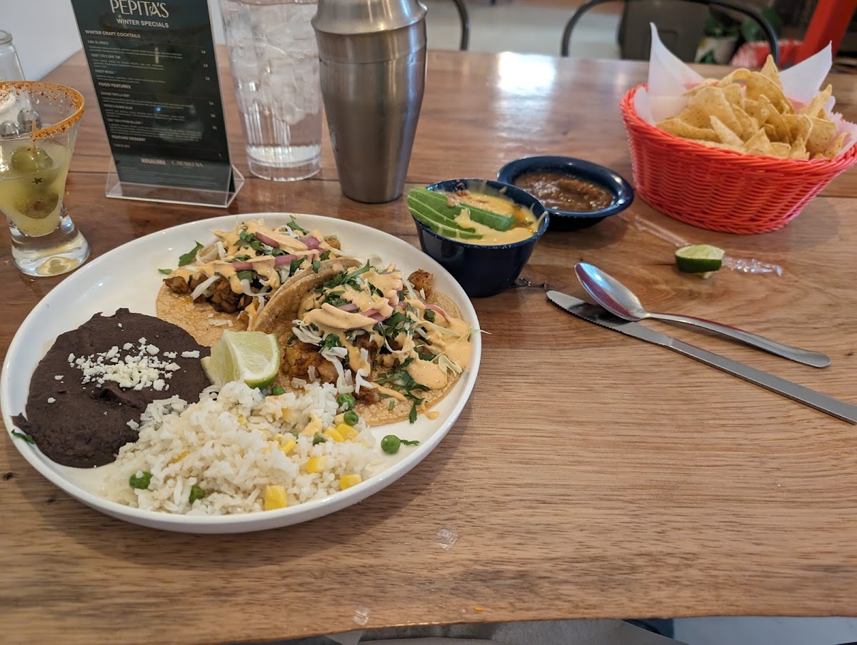 Pepita's Cafe & Bar has become known for its incredible signature dishes that showcase the bold and vibrant flavors of Mexican cuisine. One of the highlights of their menu is the quesadilla. It's stuffed with a mix of gooey cheese and perfectly seasoned fillings, making it a great choice for both a light snack or a satisfying meal. Pair it with their signature Tio Edgar’s Paloma, a refreshing cocktail that adds a zesty twist to your dining experience. Another crowd favorite is the fish tacos, which are bursting with fresh, seasoned fish, and topped with crunchy veggies and a delicious sauce-perfect for a light and flavorful meal.